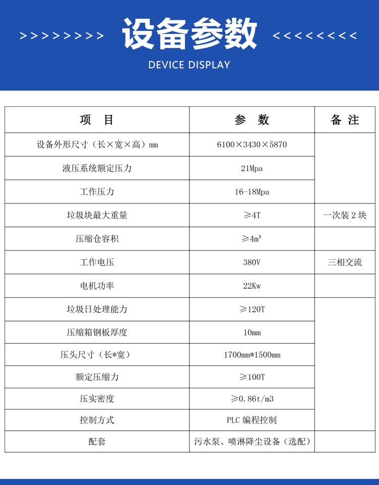 垂直式垃圾壓縮設備在原立式壓縮站的基礎上將單杠直壓變為三缸同壓,大大降低了房屋高度,科技含量高;采用12只液壓油缸控制運行,操作更加靈活簡便,性能穩定。該產品適用于城鎮生活垃圾的儲存、壓縮和轉運,通常可設置在靠近街道及居民生活小區內,是當今生活垃圾處理的理想設備。